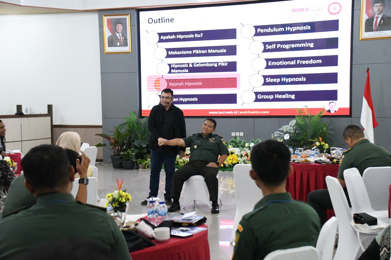 Danrem 044/Gapo Brigjen TNI Adri Koesdyanto pada kesempatan tersebut juga mengucapkan terima kasih atas terselenggaranya kegiatan Hipnoterapi di Makorem 044/Gapo.