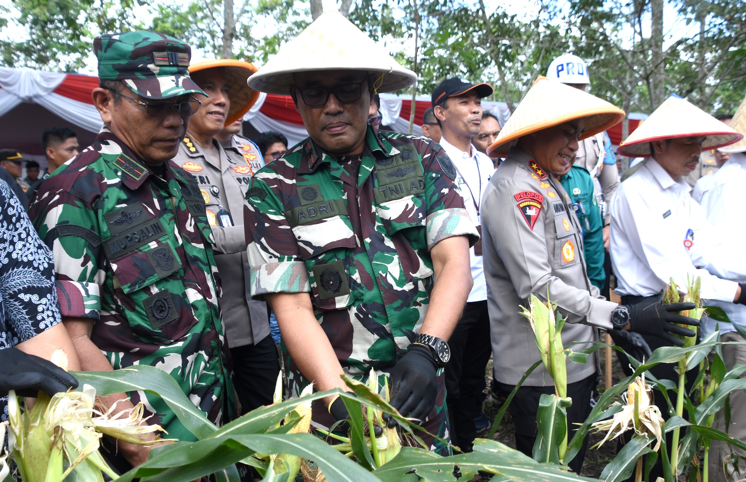 Ogan Ilir – Danrem 044/Gapo Brigjen TNI Adri Koesdyanto menghadiri Panen Raya Jagung Program Ketahanan Pangan tahap I Polda Sumsel tahun 2025 di Desa Suka Mulya, Kecamatan Indralaya Utara, Kabupaten Ogan Ilir, Rabu (26/02/2025).